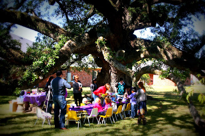 The enormous sprawling, hugging arms of the tree enveloped this sweet little tea party that was obviously meant to be in that very exact perfect spot.